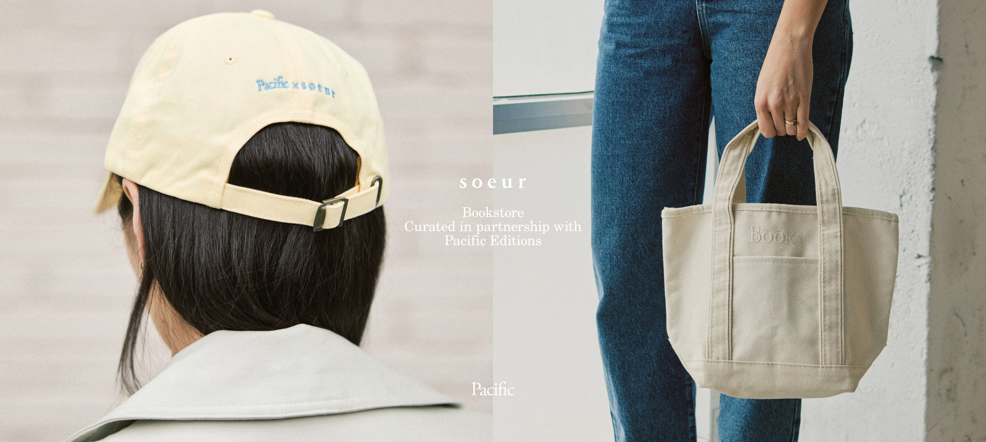 A series of canvas tote bags and caps embroidered with the word "Books" in exclusive colors.