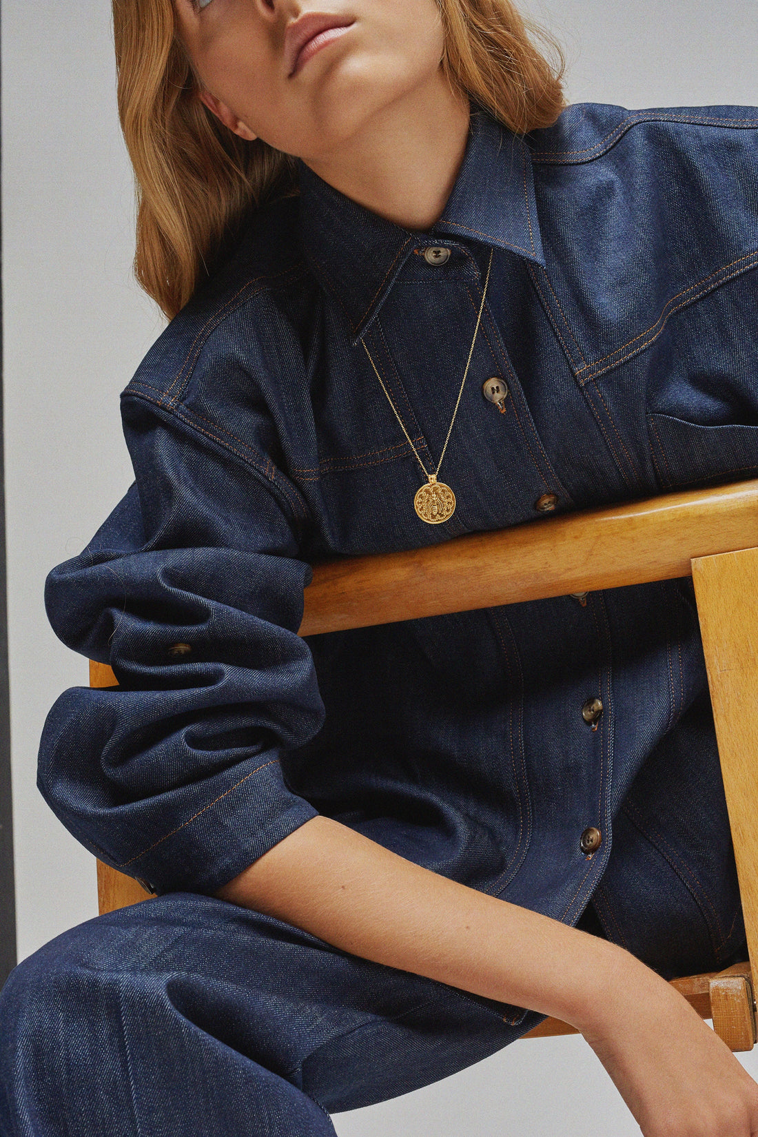 DOMITILLE 3 is a round vermeil pendant decorated with a bee. The motifs inside the medal are engraved by hammering.
