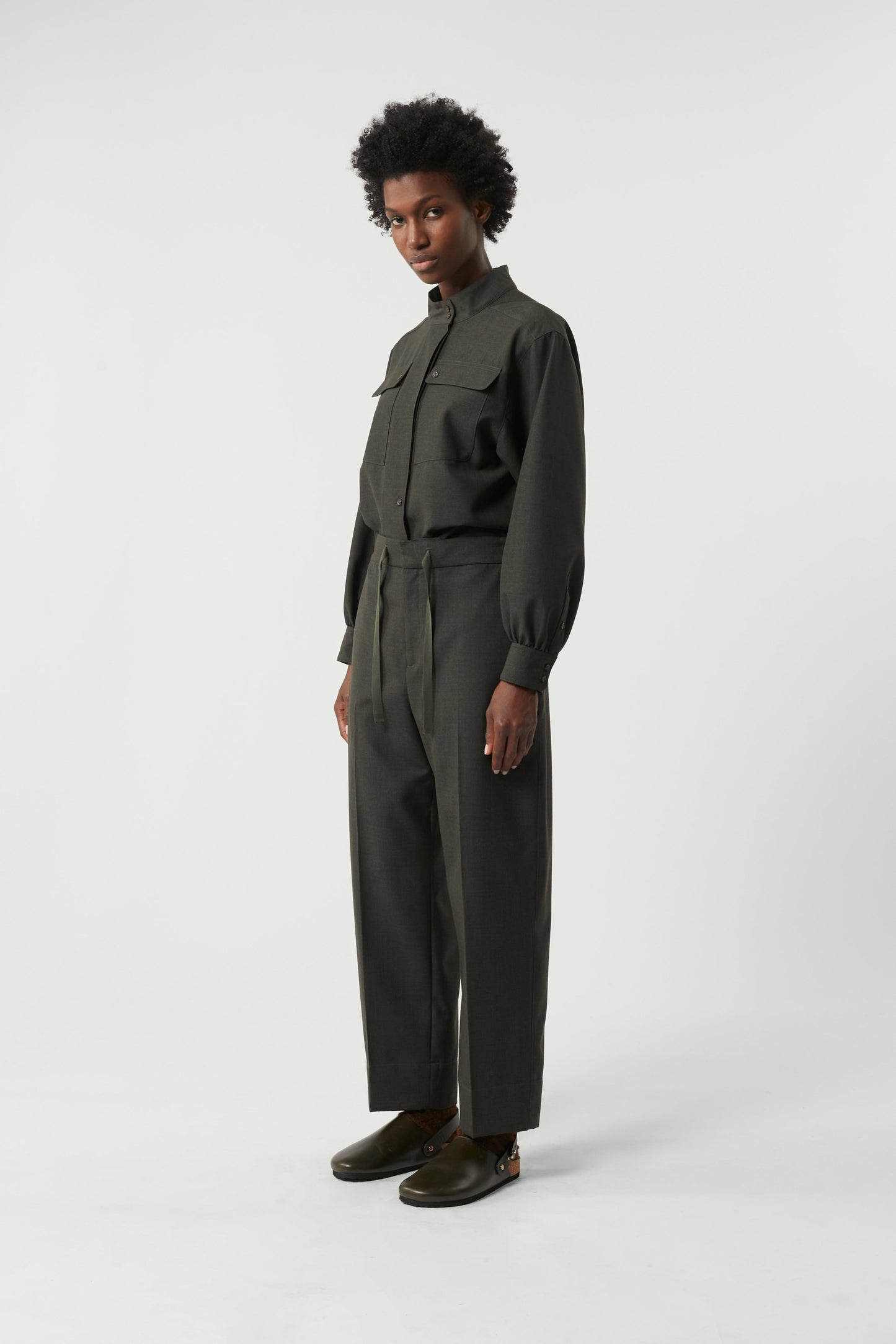 Khaki mottled wool trousers khaki